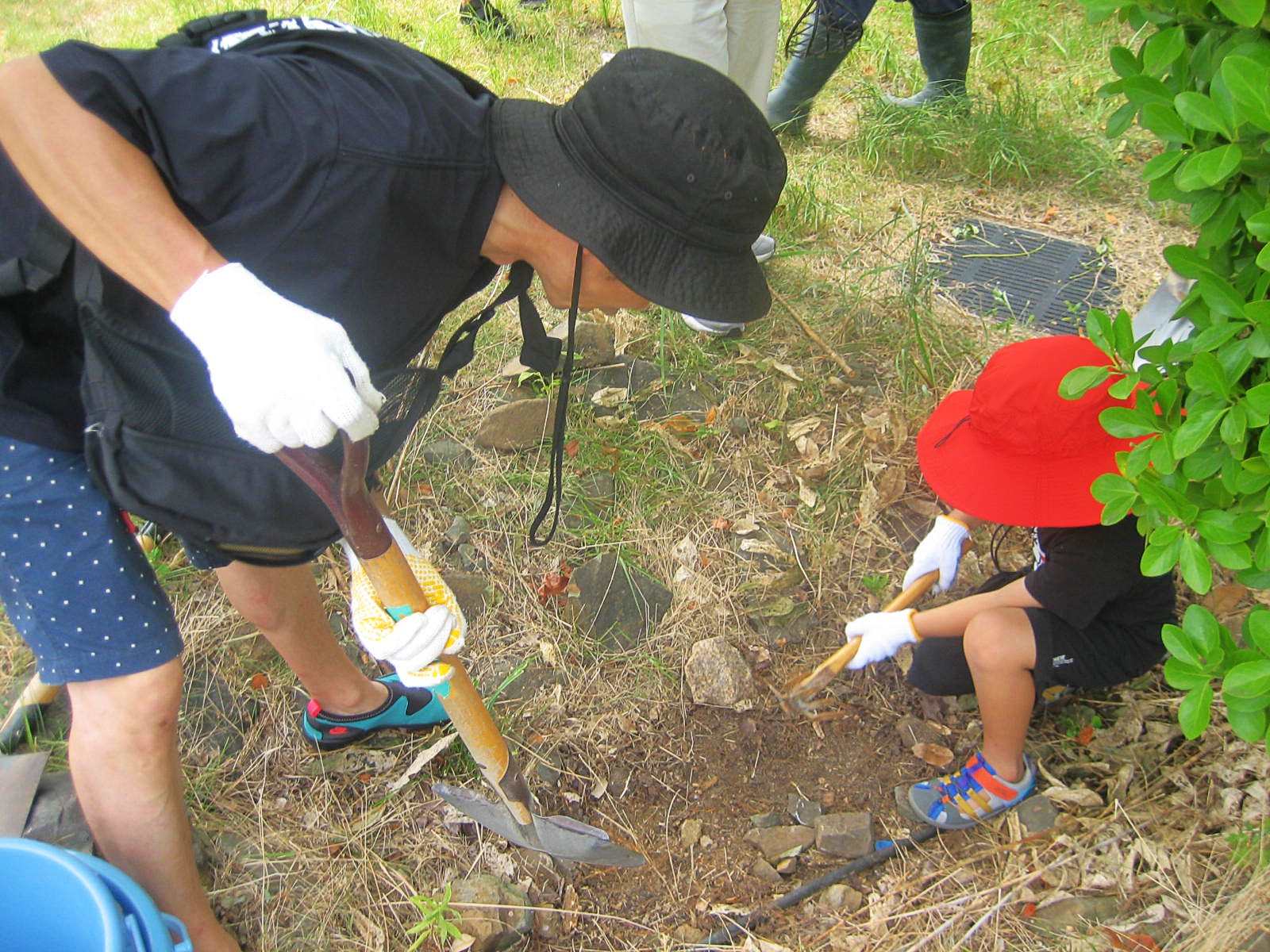 親子でジャガイモの収穫体験を行ってもらいます。実りの里で昔の日本にあった里山の景色や営みを間近で体験していただけるイベントです。緑ある環境に実際に触れて楽しんでいただくことのできる環境学習です。