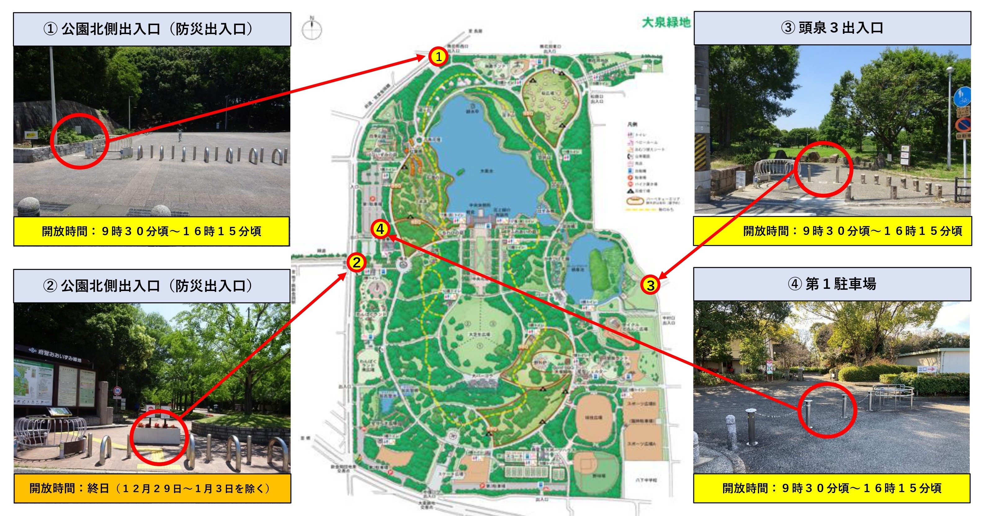 なお、公園へのバイクや車の乗り入れは禁止です。