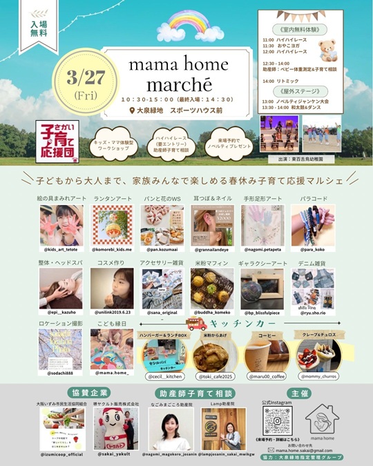 子どもから大人まで、家族みんなで楽しめる春休み子育て応援マルシェです♪